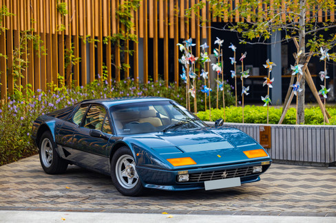 This Motor Car: This handsome 512BBi is of European specification. First delivered in 1982, it is presented in the colour combination of Blu Medio Metallica FER 506/C over beige interior. It is fitted with the original Pioneer stereo and fader unit, the original Cromodora alloy wheels, and TRX tires. The cabin was luxuriously appointed, with leather seating and thick carpets. BBis came standard with air conditioning, power windows. This example was imported to Hong Kong from the UK, first registered in 2011. The current owner bought it in 2018, now showing 2 previous owners on VRD and an indicated 7,116 Miles on the odometer. Fully dealer serviced since 2018 with major mechanical service up-to-date and all wear-and-tear components such as Clutch, Ignition, Brakes, Cambelt, Fuel pump, Hoses. Radiator and Fuse Box replaced. Accompanied by spare wheel and complete tool kit, buy with confidence.