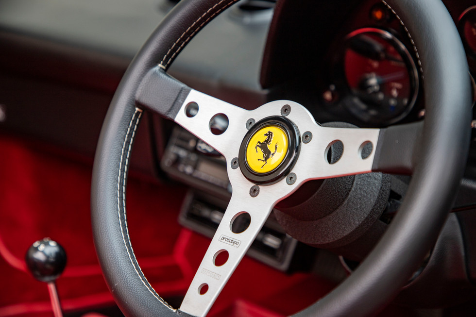 Restored. Well-kept and maintained. The exterior was restored and repainted in 2020. Paint and body is still in good condition with just some slight blemish and the original magnesium 308 alloy wheels were restored. The fully original interior is in excellent condition, the seats, dash, carpets and door cards are all in good shape. The radio with cassette tape player is in working order and so is the air conditioner, a rare luxury in any classic Ferrari. Mechanically excellent, engine overhauled, with fuel system, belts, gaskets, clutch, cooling system all being looked after. Fully maintained since new this car is well taken care of. Key, spare key, Owner's Manual, Service Book, tools & jack, car cover all presented.