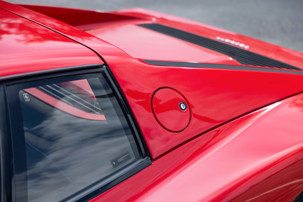 The Testarossa remains one of the most recognizable designs in automotive history, its dramatic width and signature side strakes creating an unforgettable presence. This example retains its honest, factory-applied Rosso Corsa paint, showing age-appropriate patina that speaks to its carefully preserved history. The completely original Nero leather interior with its striking Rosso carpets presents in remarkably good condition, offering a authentic time-capsule experience. Complete with its original leather owner's pouch, tools, and documentation, this Monodado specification represents the most desirable early iteration of the Testarossa legend.