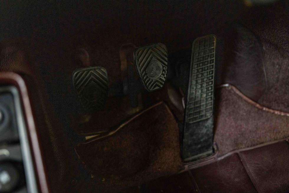 Interior (77/100): The iconic two-tone leather interior is in honest, preserved original condition. Signs of wear and leather creasing, especially on the driver's seat, enhance the car's authentic character. The aftermarket Momo steering wheel is fitted; the original is supplied.