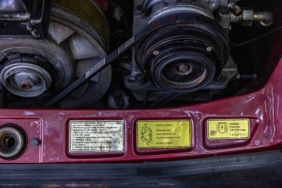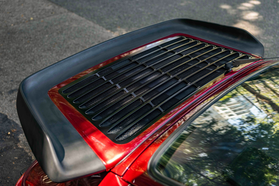 The Velvet Red Metallic (L81L) paintwork presents in overall good, honest condition. It shows stone chips, small scratches, and minor imperfections commensurate with its age and mileage—this is not a concours trailer queen but a well-preserved, driven modern classic. The rare colour-matched FUCHS wheels retain their correct period aesthetic. The iconic whale-tail rear spoiler and wide-body stance remain as dramatic as ever. Please note the door locking mechanism is currently broken and has been disabled; a straightforward repair for the next custodian.