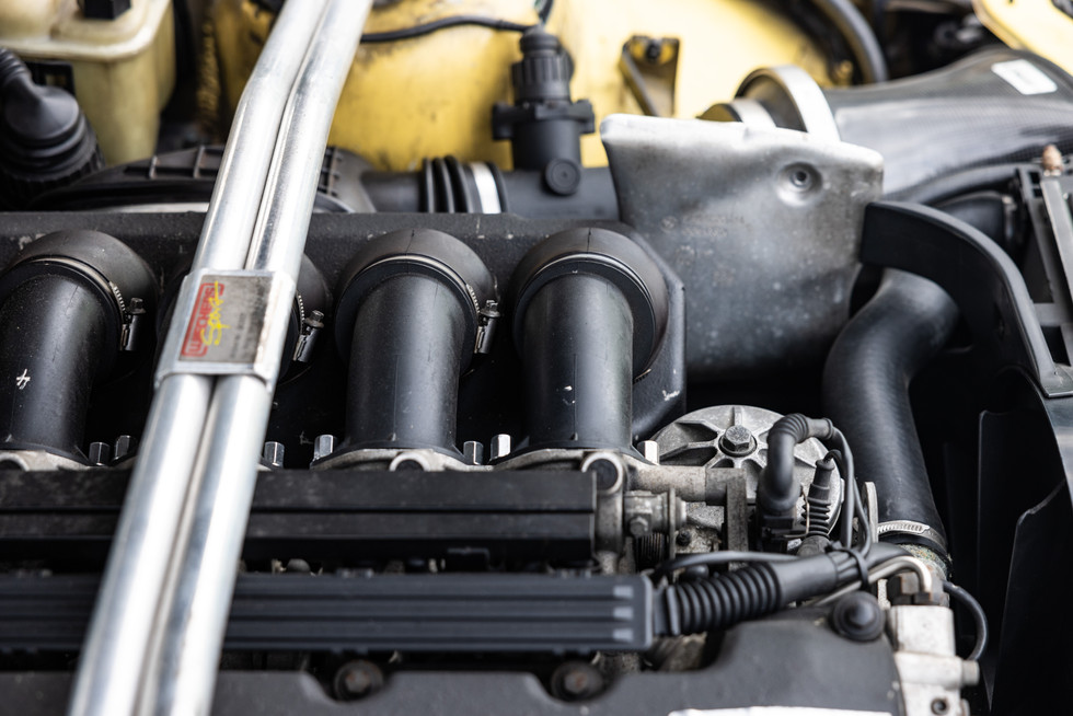 Improvement to the car includes a set of 18" WORKS 2-piece alloys, shod with RE-71RS Tires (Refreshed Original M3 Evo Rims included with sale). A set of KW V3 Suspension and Eisenmann Exhaust System installed in 2022. We also noticed a GruppeM Airbox and Wiechers Sport strut brace. Finally, a new updated audio system along with new speakers.