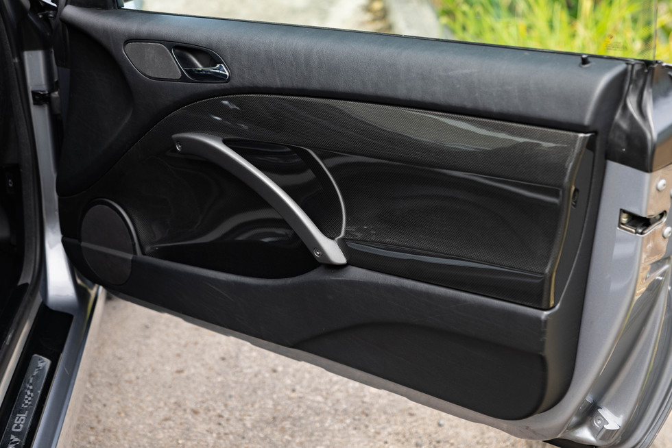 Exterior (95/100): The factory Silver Grey Metallic paint presents superbly, with only the most minor blemishes confirming its authentic, cherished history. The iconic CSL-specific bodywork, including the CFRP roof and wheels, is in outstanding condition.