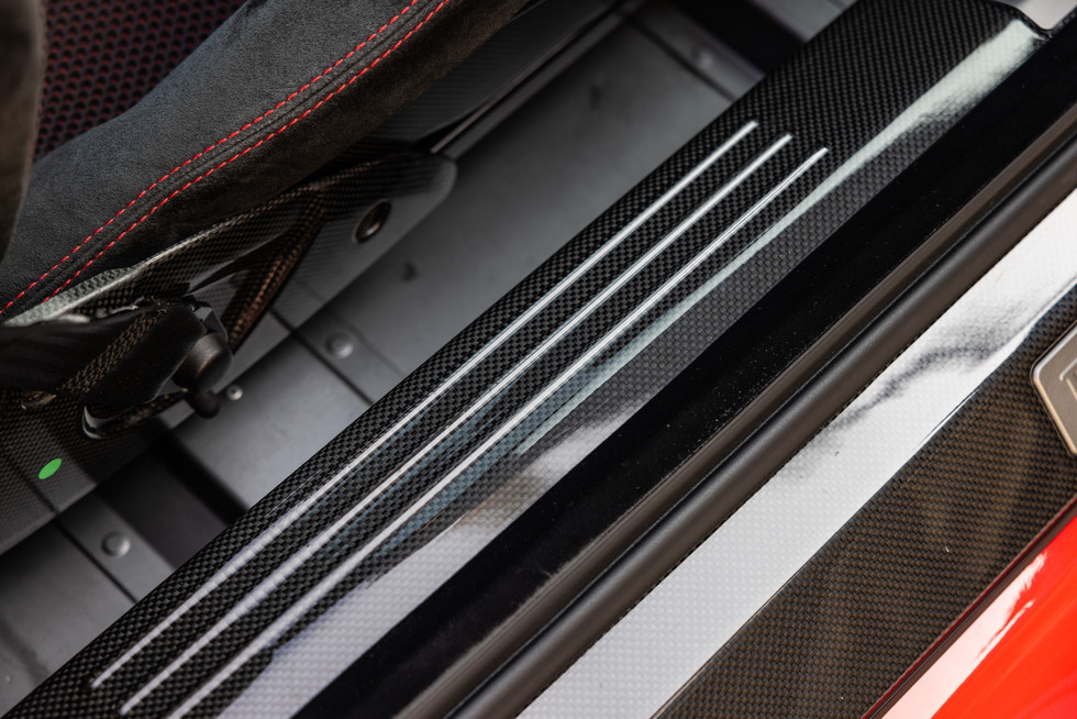 Exterior (98/100): Flawless carbon-fiber elements, unmarked forged wheels, and factory-fresh Tri-colore decals. The only thing to "nip pick" was the slightly deteriorated surface on the back side of the roll hoop.