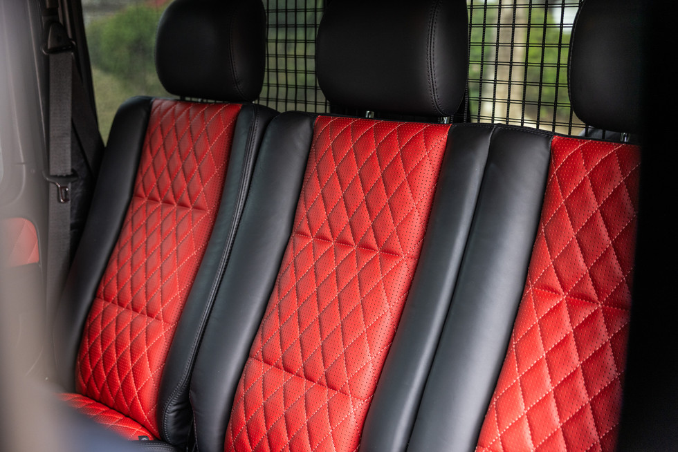 A Cabin of Contrast: Black Leather with Crimson Flourishes